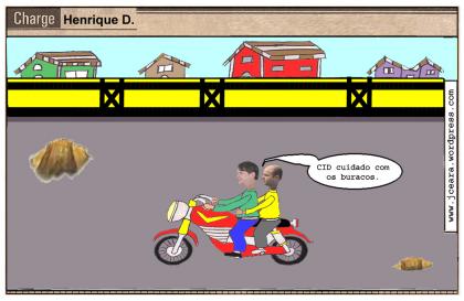 A charge descreve sobre os buracos na cidade.