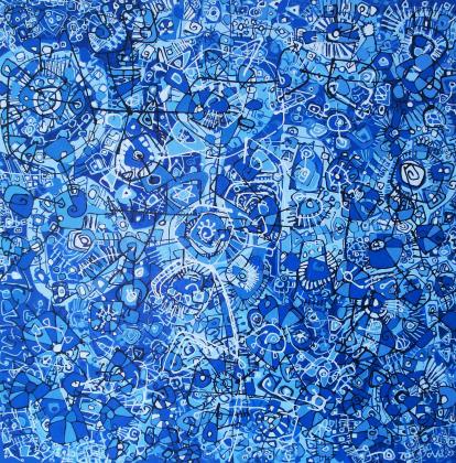 Obra de Fernando Pauler (artista visual e designer gráfico) - "Imaginarium VIII - 2014 - Mista sobre tela - 100 x 100 cm - Obra doada para fazer parte do acervo da FURB/Campus I - Blumenau/SC. Obra assinada (frente e verso).