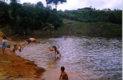 Outras crianças vão rio abaixo,jogando na sorte.
