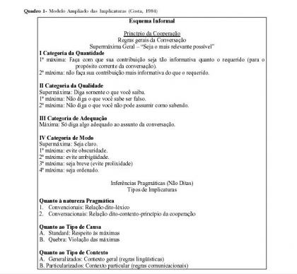 A categoria da Quantidade relaciona-se com a quantidade de informação a ser fornecida e a ela correspondem duas máximas: