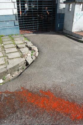 Mas é bom alertar que a ação é tensa, ou que nós fizemos sob tensão. Não nos lugares que hoje tem outro uso, mas naqueles em que permanece as plaquinhas de "área de segurança"... Na porta desses tem sempre um carinha beirando completar 20 anos carregando um fuzil e preocupado de não passar o fim de semana de castigo porque não soube o que fazer com uns carinhas que deixaram cair um liquido [ou pó] vermelho num movimento tão rápido que não lhes deu tempo de pensar o que poderia ser, e que por isso não tomou nenhuma atitude, nem quando fotografaram a mancha no chão...
