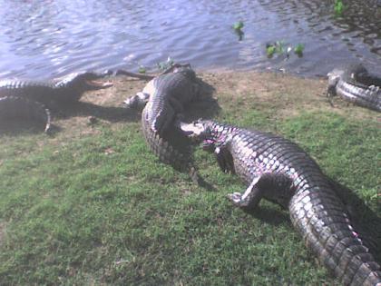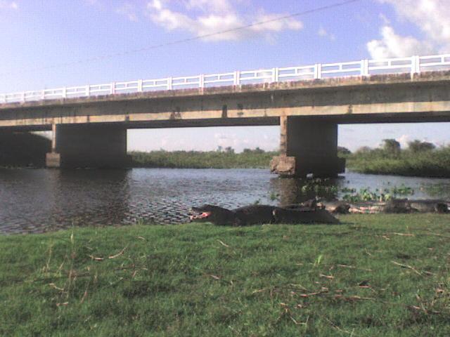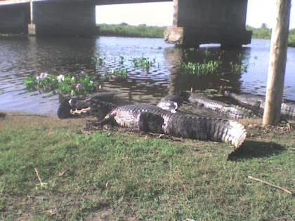 Perto da ponte, que aparece numa das fotos, existe um barzinho de beira de estrada e, acho eu, que eles alimentam ou cevam os jacarés para que funcionem como um chamariz aos turistas.