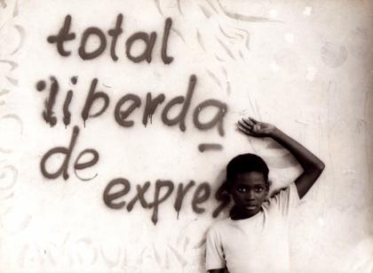 Ilha, quem se expressa é, mais que o muro inscrito, o menino. Vi assim. E gostei de ver.