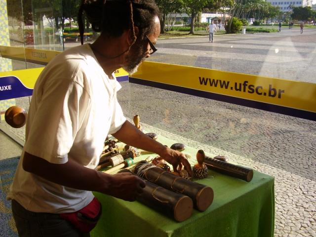 Cruzei com ele durante um evento interessante que aconteceu na Universidade Federal de Santa Catarina. Aproveitou o influxo de pessoas e montou a banca ali.