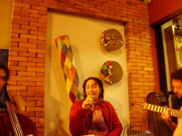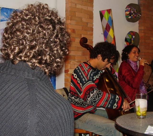 As apresentações sempre reservam surpresas, já que músicos não faltam na Lagoa da Conceição, e vários dão palhinhas na roda. De qualquer maneira, o grupo fundamental que se reúne periodicamente conta com Raphael Galcer, Marina Beraldo, Maria Beraldo, Osvaldo Pomar e Lu Alves na voz (o pessoal migra com freqüência pro samba). Ontem, por exemplo, a pedido, tocaram três músicas do Hermeto Pascoal. Estavam acompanhados, em diferentes momentos, de um pandeirista chamado Camilo, do cavaquinista Álvaro Fausane, integrante também do grupo Molho Madêra, e do violoncelista Fred Malverde.