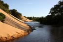 O percurso finaliza em frente a um pequeno riacho avermelhado. A paisagem é uma gostosa massagem nas vistas do vivente. E segundo a dona do “Dunas Bar e Restaurante†(pequeno barzinho ao lado do riacho), uma massagem também em qualquer mente aborrecida. “Ontem mesmo chegou um casal que estava brigado. Passaram o dia por aqui e quando foi no final da tarde já tinham feito as pazesâ€, disse Maria José da Cruz Alves, 40 anos. A poucos metros e também participando da conversa está Nilton Santos, 34, que mora na área e vez em quando ajuda Maria. Nilton está sentado em uma mesinha curtindo o visual e degustando uma cervejinha, o detalhe é que a mesa e as cadeiras estão dentro do riacho. Hidromassagem melhor não existe. “Tudo aqui é bom, não tem como ficar estressadoâ€, falou o morador.