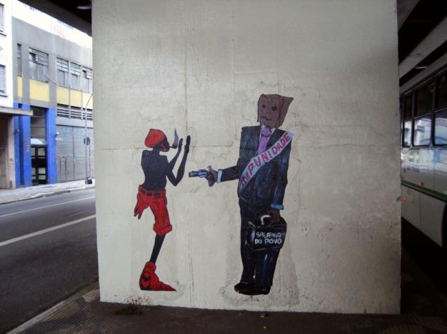 Que ótimo personagem! Fiquei feliz de conhecê-lo. Vivo pensando que o grafite precisa se espalhar mais pelas cidades brasileiras.. aqui no Rio temos muitos, concentrados em algumas regiões, em geral com uma "pegada" diferente dos de SP. Teria imagens de grafites interessantes do (e no) Mato Grosso do Sul para ver? :)