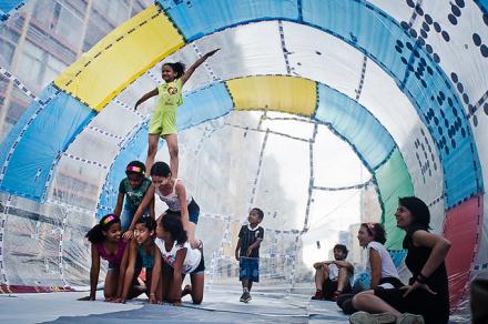 As crianças foram as mais interessadas em se aproximar e entrar - no sentido literal da palavra -, justamente por conta da ludicidade que o envolve. Algumas pessoas só olharam de fora, receosas e se privando de uma nova percepção de espacialidade. Havia gente perguntando se podia entrar. A resposta era óbvia, “Sim!â€, mas os fundamentos dessa resposta são muitos profundos.