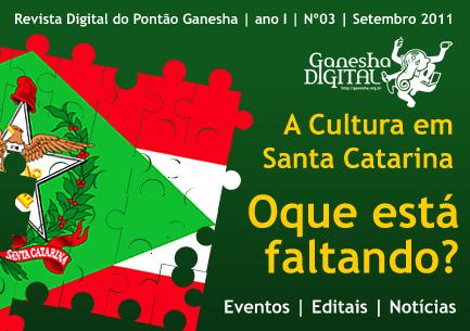 A terceira edição da revista do Ganesha Digital – do Pontão Ganesha de Cultura Digital - trata das polÃticas públicas para a cultura em Santa Catarina e o processo de integração do estado ao Sistema Nacional de Cultura.