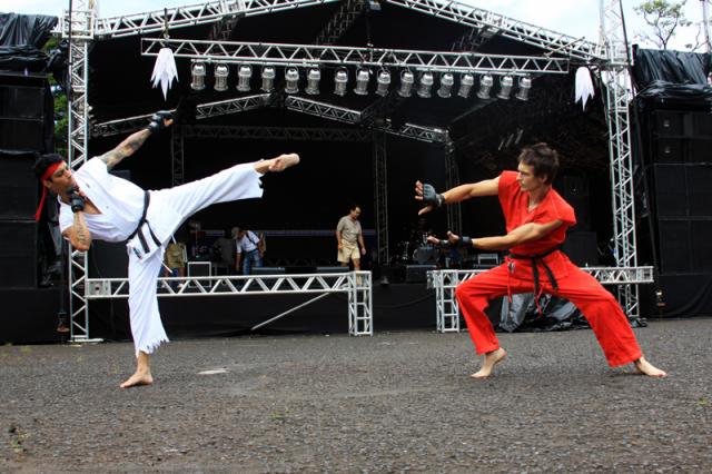 “O jogo Street Fighter faz parte da nossa infância. Jogávamos em fliperama. Eu não tinha videogame em casa, então ia com os amigos para bares que tinham fliperama. Era aquela molecadaâ€, diz Mantena, que, na verdade, se chama Fábio e é um dos cantores/dançarinos da dupla. Já JP, abreviatura de João Paulo, tinha em Ken, um dos personagens do jogo, um Ãdolo da infância. “Toda criança quer se identificar com algum personagem. Eu era ele, porque era bem branquelo e loiro. Para mim, é uma honra interpretá-lo.â€