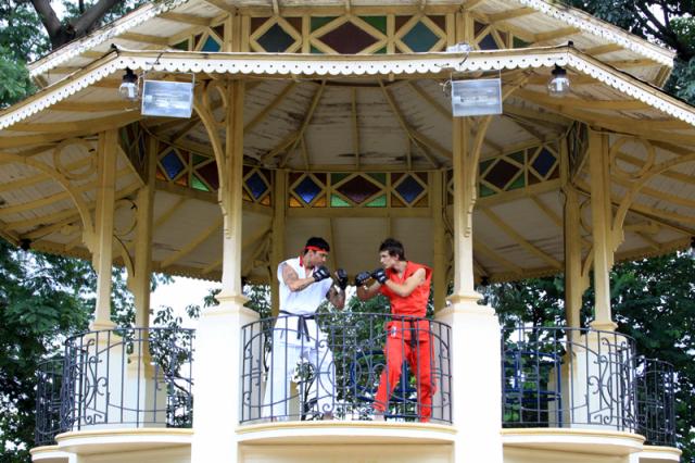 Por falta de dinheiro, a produção do clipe foi bem baratinha. Os quimonos usados pela dupla foram pechinchados em uma loja de bairro. “Um quimono bom custa mais de R$ 800. O vermelho, que normalmente é usado em jiu-jitsu, é mais de mil reais. Paguei R$ 60 em cada um. E um detalhe: os dois eram brancos. Eu tingi um deles de vermelho em casa. Agora, tem empresa procurando o nosso empresário para patrocinar os quimonos. Chique, né?â€, diverte-se Mantena, que chegou a ser professor de capoeira em Uberlândia. Já JP praticou judô por quatro anos.