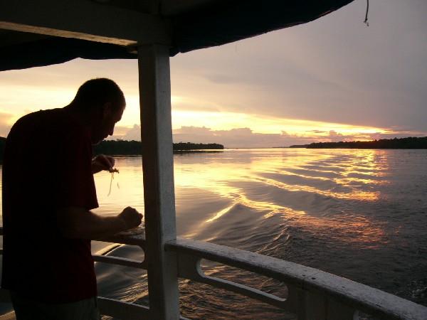 Com o sol baixando o terraço começa a ficar mais povoado. O barco começa a entrar em um labirindo de ilhas chamado Massarabi e começa a fazer um zigue-zague aparentemente inexplicável. “Aqui tem que acertar o canal. Tem muita pedra no fundo”, resume o prático sem tirar os olhos do equipamento de sonar. Dois andares acima, um dos jogos preferidos do amazonense entra em cena formando duplas que duelam no sistema perde-sai. Jogar dominó no Amazonas é como experimentar a sua privacidade violada, pois a habilidade matemática de quem joga é tamanha que seus oponentes sabem o que você tem na mão já no baixar da primeira pedra.
