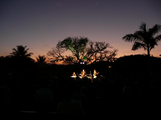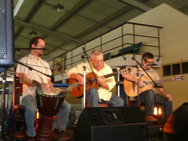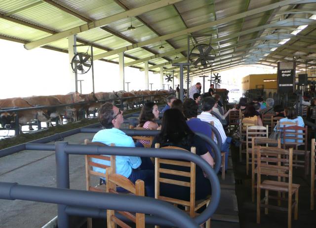 A programação do festival não deixa espaços vazios e às 14 horas já estava marcado o recital de Turíbio Santos na Fazenda Cananéia, cerca de meia hora dali, seguindo a BR-393. Rumei para lá e a grande surpresa: O recital acontece no curral da fazenda. As baias do gado servem de camarotes para o público! Separadas por um corredor as vaquinhas Jersey também iriam escutar o concerto. Ana Calmon, proprietária da fazenda, nos diz que a produção de leite sempre aumenta depois desses recitais musicais. A Fazenda Cananéia é uma referência em produção de leite no Brasil e uma das maiores fornecedoras da Nestlé. Lá estavam Turíbio Santos e mais Claudio Fontes no violão e voz e o percussionista Junay. Neste recital a África era a presença principal a partir do nome do concerto: Da África à Bossa-Nova. Turíbio começou com Valsa do venezuelano Antonio Lauro, passando pelo Concerto de Aranjuez (Joaquin Rodrigo) até chegar aos temas mais afros. Em seguida Claudio Fontes cantou composições que lembram Noel Rosa e ao final o trio tocou clássicos do repertório de Tom Jobim como Samba de uma nota só (com Newton Mendonça) e Dindi (com Aloysio de Oliveira). A grande surpresa foi o percussionista Junay Diógenes, com seu tambor afro (djambê) de mil tonalidades e toques. Conversei com ele depois do recital e devo fazer uma matéria especial sobre ele e seu contato com músicos africanos de Mali que aperfeiçoaram seus conhecimentos sobre o instrumento.