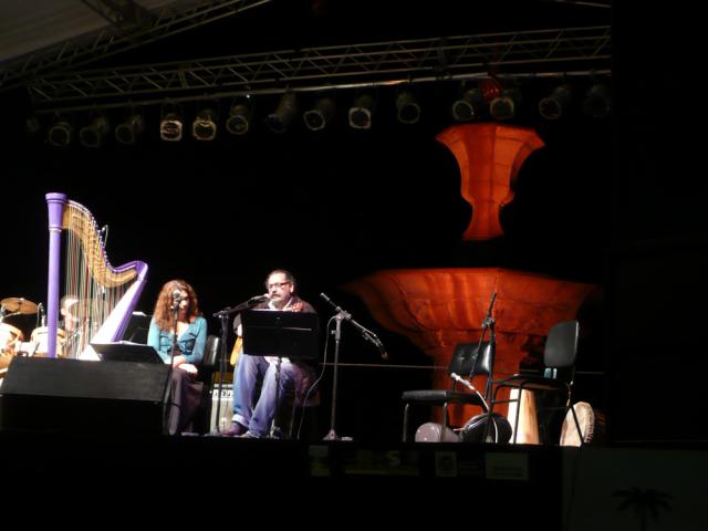 Com o frio da noite chegando voltei a Vassouras para o show de encerramento daquele sábado a se realizar na Praça Barão de Campo Belo. Cristina Braga e sua harpa com seu convidado Moacyr Luz era o programa. O palco, como nos outros anos, foi montado no extenso gramado da praça em frente à Igreja Matriz, onde pontifica o chafariz inaugurado em 1849 por D. Pedro II. Cristina com sua harpa de concerto de 25 quilos transita do popular ao erudito com facilidade e fez uma boa dobradinha com Moacyr Luz depois de começar com Manhã de Carnaval, de Luis Bonfá. A África esteve novamente presente com Zuela de Oxum, de Moacyr e Martinho da Vila, e Cangoma, canto de Clementina de Jesus que nasceu numa fazenda em Valença, pertinho dali.