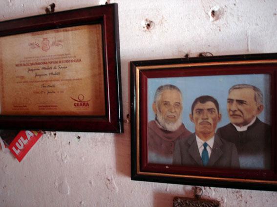 "A ladeira que sobe até o Padre Cícero, gigantesca imagem que domina a paisagem de Juazeiro do Norte, é ladeada por muitas casas de peregrinos. Cada sala tem um altar mais caprichado que o outro. Mas nenhum deles se compara, em matéria de decoração, com a sala de oração da casa de Madrinha Dodô, situada bem no início da subida. Não há lugar vazio nas paredes e nas mesas do altar. São milhares de santinhos, quadros coloridos retratando cenas bíblicas, terços, imagens de todos os santos, flores, velas e luzes de natal.