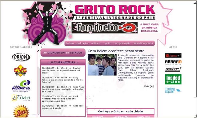 Inclusive foi via Circuito Fora do Eixo, explica Pablo Capilé, movimento que já reúne quinze estados, é que o Grito Rock Brasil foi articulado. “Fizemos o Grito Rock aqui em Cuiabá durante quatro anos seguidos. Com a consolidação dos trabalhos em rede de produtores, jornalistas e bandas, nessa perspectiva de integração de cadeias produtivas, começamos a discutir a possibilidade do festival integrado, e em menos de doze horas já eram mais de dez cidades na rede do festival”, revela.