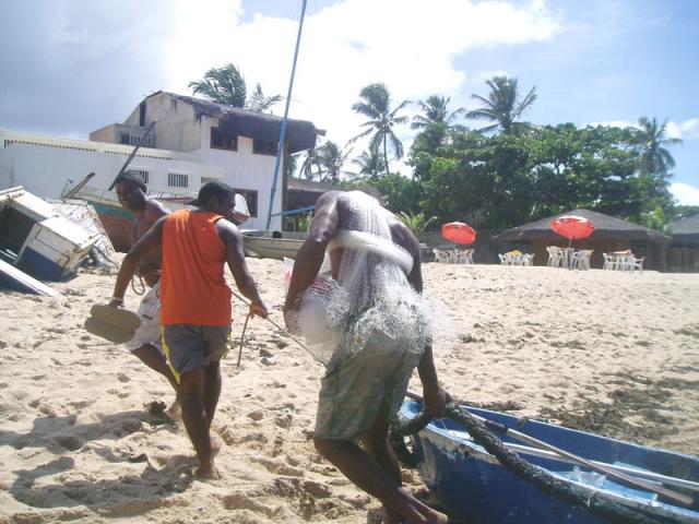 Extensão da colônia de Itapuã - Canoas, pesca rápida. A maioria pesca para o próprio consumo. O peixe conseguido é vendido ao peixeiro, depois rateado entre puxadores, remadores, calangueiros e donos dos barcos.