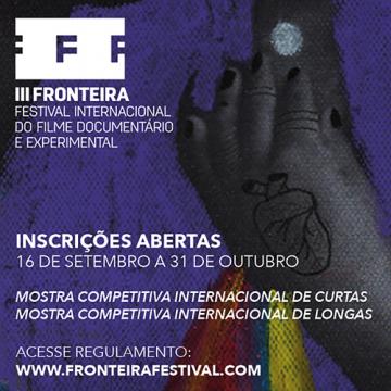 A terceira edição do festival chega com algumas novidades. Novas datas e nova estrutura de regulamento para inscrições de filmes (veja aqui: http://www.fronteirafestival.com/pdf/Regulamento-Fronteira-2016-2017-pt.pdf).