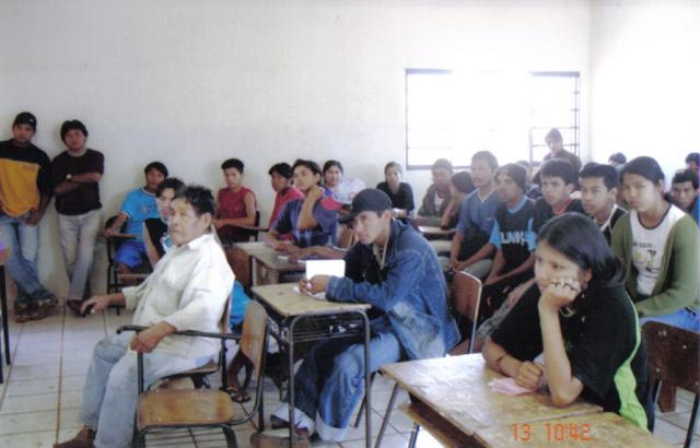 Junto com a professora Dulce estava o estudante de jornalismo Marcelo Eduardo da Silva, que vai semanalmente a aldeia Buriti. Ele não enrola. ‘Aldeia não é coisa do outro mundo. É como se fosse um bairro pobre de Campo Grande’, compara. (Fico pensando se isso ou bom ou ruim!) Aos poucos vou entendendo que o projeto Jornal Voz Terena serve realmente para revitalizar (os acadêmicos não gostam que usem a palavra resgatar) a lÃngua terena porque o que eles falam mesmo é português. Mas a dificuldade para fazer circular este jornal é exemplar. A primeira EDIÇÃO saiu em abril de 2006. Dois mil exemplares bancados pela própria UFMS na ausência de patrocÃnio. O segundo número está pronto desde dezembro de 2006. Mas até hoje (13 de agosto de 2007) ainda não saiu. Falta recurso para bancar a impressão. Algo em torno de R$ 1.500! Segundo a professora Dulce, quem vai ‘salvar a pátria’ será um grupo da UERJ. Precisou vir de longe a ajuda hein!?!