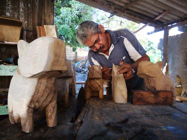 O endereço estava na internet. Na verdade, era uma das únicas coisas que o usuário que procurasse por aquele nome – ao lado das palavras Corumbá e artesanato – poderia encontrar. No entanto, a casa de Edson Alves da Cruz era mais fácil de ser localizada pelo Google do que pela reportagem. “Pergunte por Edson das Capivaras”, disse ele por telefone. “Todo mundo conhece!”. No caminho, os mototaxistas davam de ombros e os vizinhos torciam a cara em interrogação. Há mais de 30 anos dedicado a retirar da madeira as formas dos bichos do Pantanal – e há 25 morando no mesmo lugar – Edson balança a cabeça ao saber das dificuldades. “Todos esses anos no trabalho e ainda passamos por isso. Não é fácil, não é fácil”.
