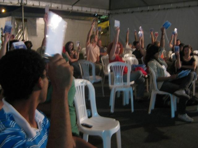 Ao retornar para a plenária iniciamos a leitura e o levantamento dos destaques nas propostas reunidas pelas etapas anteriores, onde foram lidos documentos socializados na Tenopoliticas, no Grupo Arte Digital no Fórum da Cultura Digital Brasileira e em atividades presenciais como o Fórum da Cultura Digital, Assembléia da Pré-Conferencia Setorial de Arte Digital no Pará (Ùnico Estado a realizar uma Assembléia Geral Setorial), Grupo de Trabalho de Arte Digital do Conselho Nacional de PolÃticas Culturais (CNPC), Conferencia Livre de “Comunicação para a Cultura†e do Plano Nacional de Cultura. O horário da tarde também foi para a candidatura da lista trÃplice para o CNPC. A bancada do Norte, composta por representantes do Acre, Amapá, Para e Roraima aproveitou para fazer uma plenária para eleição dos delegados da Macro Região Norte de Arte Digital para a II CNC onde foram eleitos Arthur Leandro (PA) e Paulo Zab (AP). Nesta mesma plenária definimos que irÃamos apoiar o nome de Arthur Leandro (PA) para indicação no CNPC. Vale ressaltar que tais posicionamentos da bancada do Norte causou algumas reações, talvez por ter surpreendido algumas outras bancadas com um discurso incisivo e a respeito de realidades fora do contexto de muitos presentes. No Plenário Nacional finalizamos a discussão em um horário bem avançado, onde designamos uma comissão de sistematização para apresentar o resultado no dia seguinte.