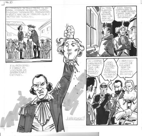 - Estamos também, produzindo em parceria com o André Diniz, velho amigo e parceiro de longa data, um material a ser lançado pela Escala Educacional, sobre a “Inconfidência Mineiraâ€. Na verdade, o Diniz está com uma produção grande de roteiros feitos para essa editora que foram distribuÃdos entre eu, Daniel Brandão, José Aguiar, Antonio Éder, fora o próprio Diniz que também está desenhando um roteiro seu. O roteiro do Diniz embora caminhe na parte educacional é ótimo, contando de uma maneira que só ele sabe levar toda a situação que envolveu este momento da história do Brasil.